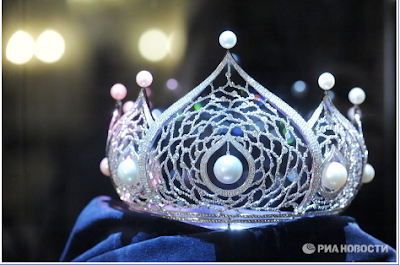 La corona para la mujer más bella de Rusia es de oro blanco de 750 quilates y está adornado con 2.358 diamantes por un total de 62 quilates, 14 perlas exclusivas, la mayor de las cuales tiene 19 milímetros de diámetro.